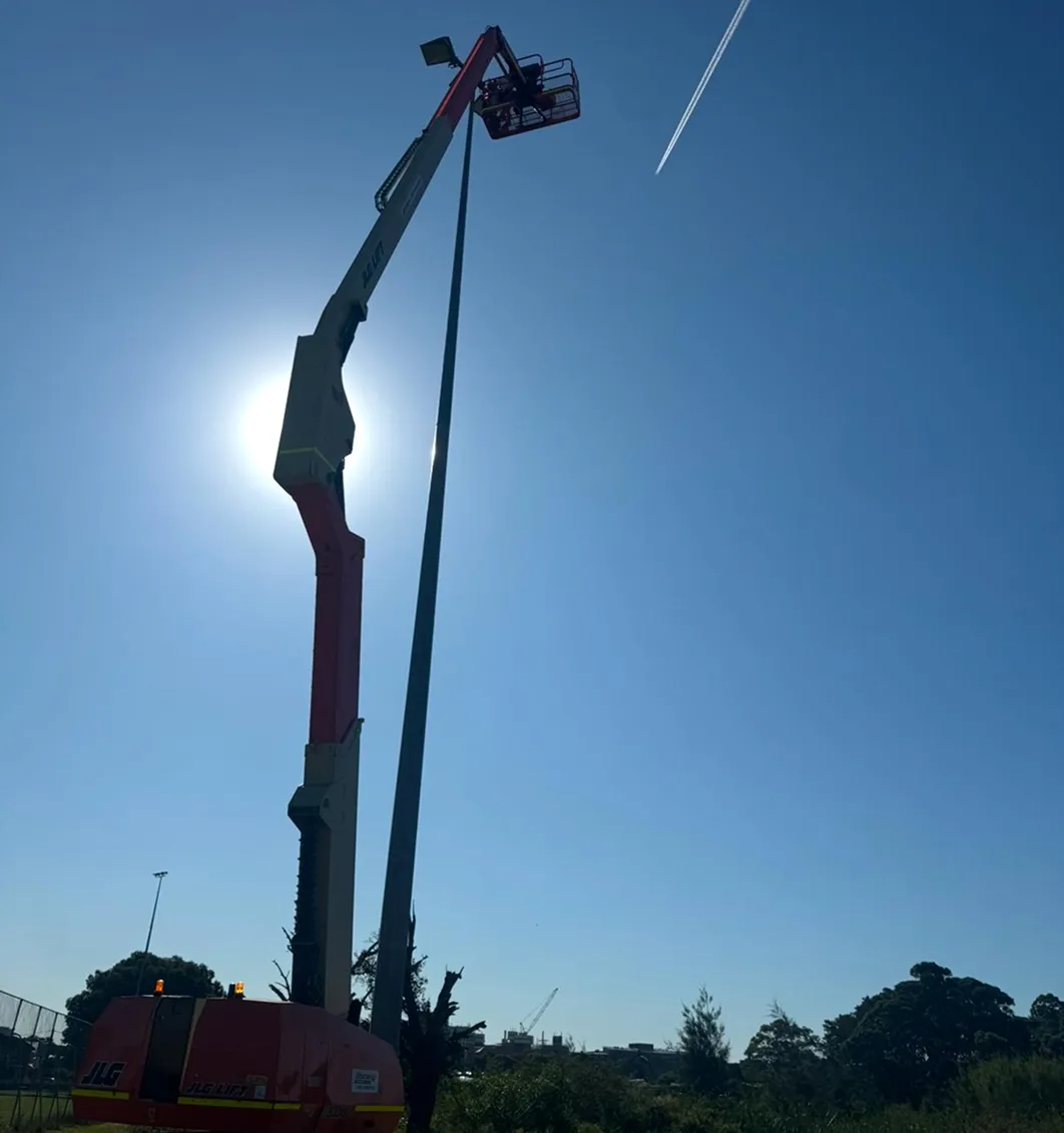 When Scots Football Club needed their 25-metre field lighting fixtures serviced and upgraded to competition standards, they faced the challenge of finding electricians capable of safely working at these heights while meeting specific lux requirements for competitive play. Our Level 2 certified team deployed an 80-foot boom lift and implemented comprehensive height safety protocols to access and service these fixtures. We didn't just repair the lights—we recalibrated the angles for optimal field coverage, replaced outdated components with energy-efficient alternatives, and verified performance against the standards of the relevant sporting association. Our expertise in sports lighting maintenance and high-risk work at significant heights enabled us to restore optimal lighting conditions while reducing energy consumption, all while achieving zero safety incidents despite the challenging work environment.
